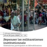 - [Colloque international] Repenser les militantismes institutionnels – 19 & 20 juin 2025Repenser les militantismes institutionnelsIllibéralismes, participation et (dé)mobilisations La question du militantisme institutionnel a suscité de nombreux travaux dans les années 1990 et 2000, sur l’environnement, les politiques de genre ou la politique de la ville, comme en témoigne le dossier que lui a consacré la revue Politix en 2005. Moins étudié depuis en France, le…