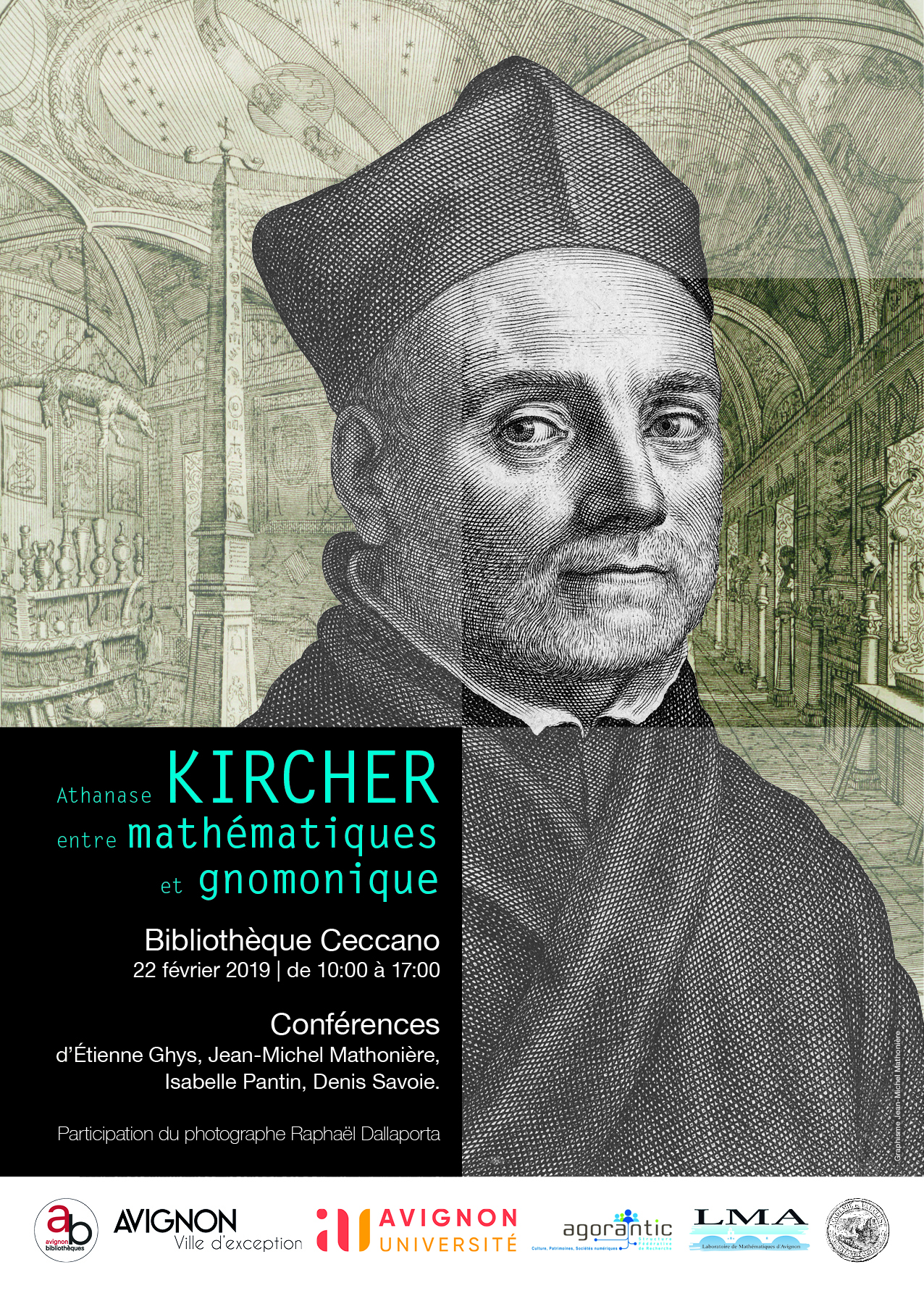 Le Laboratoire de Mathématiques d’Avignon (LMA) et la Fédération de Recherche AGORANTIC d’Avignon Université organisent le 22 février 2019, un colloque d’une journée autour d’Athanase Kircher (1602-1680), jésuite et érudit, un des scientifiques les plus importants de l’époque baroque. Cet événement est en partenariat avec l’Académie de Vaucluse et l’association Lux et Umbrae.